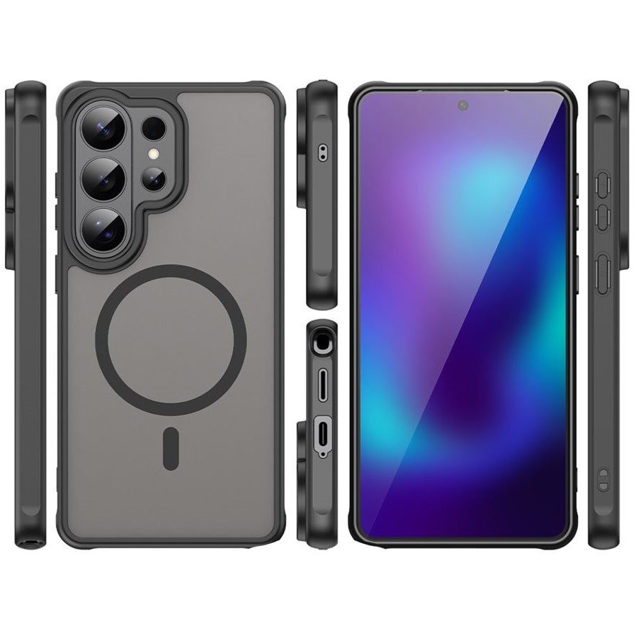 Твърд Калъф с MagSafe за Samsung Galaxy S26 Ultra 5G, Повдигнати ръбове, Полупрозрачен/ Черен